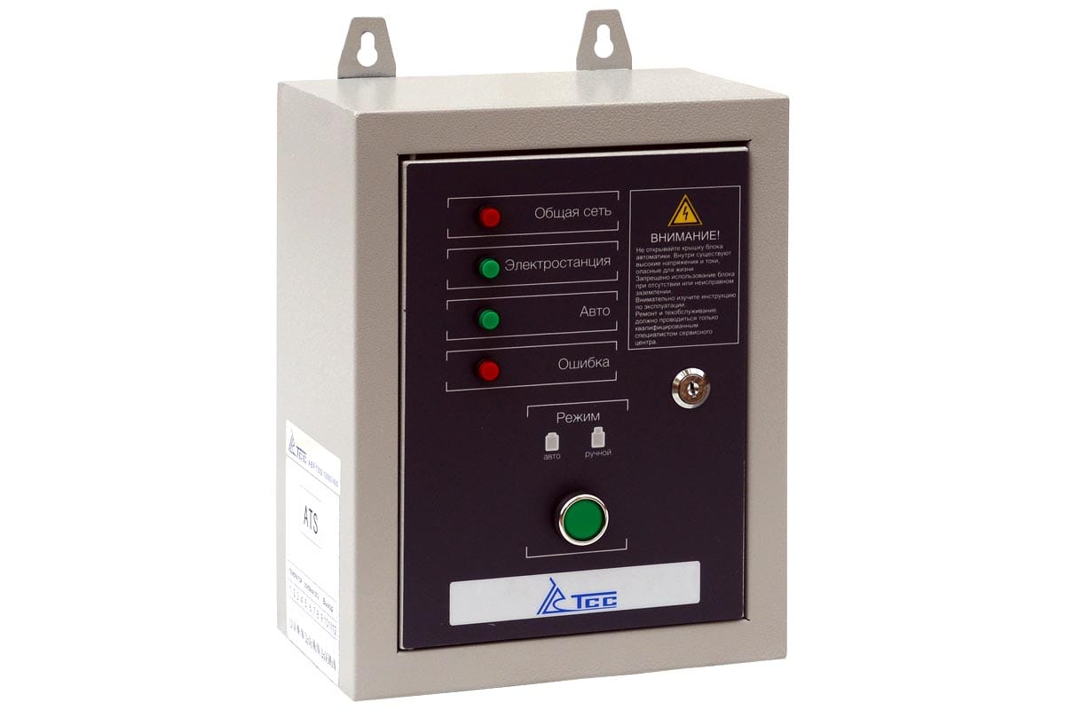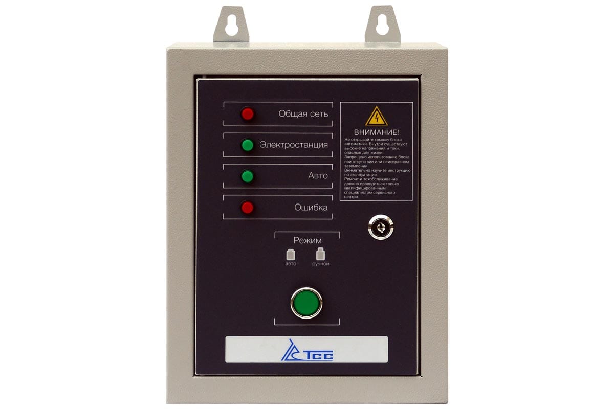 Блок АВР TSS 10 кВт/400 включает в себя систему автозапуска и АВР (автоматического ввода резервного электропитания). Предназначен для автоматического запуска бензинового генератора в момент пропадания основного источника электроэнергии и переключения нагрузки без вмешательства человека. При появлении основного источника электропитания происходит отключение электростанции. Блок автоматического управления для контроля наличия напряжения в сети.