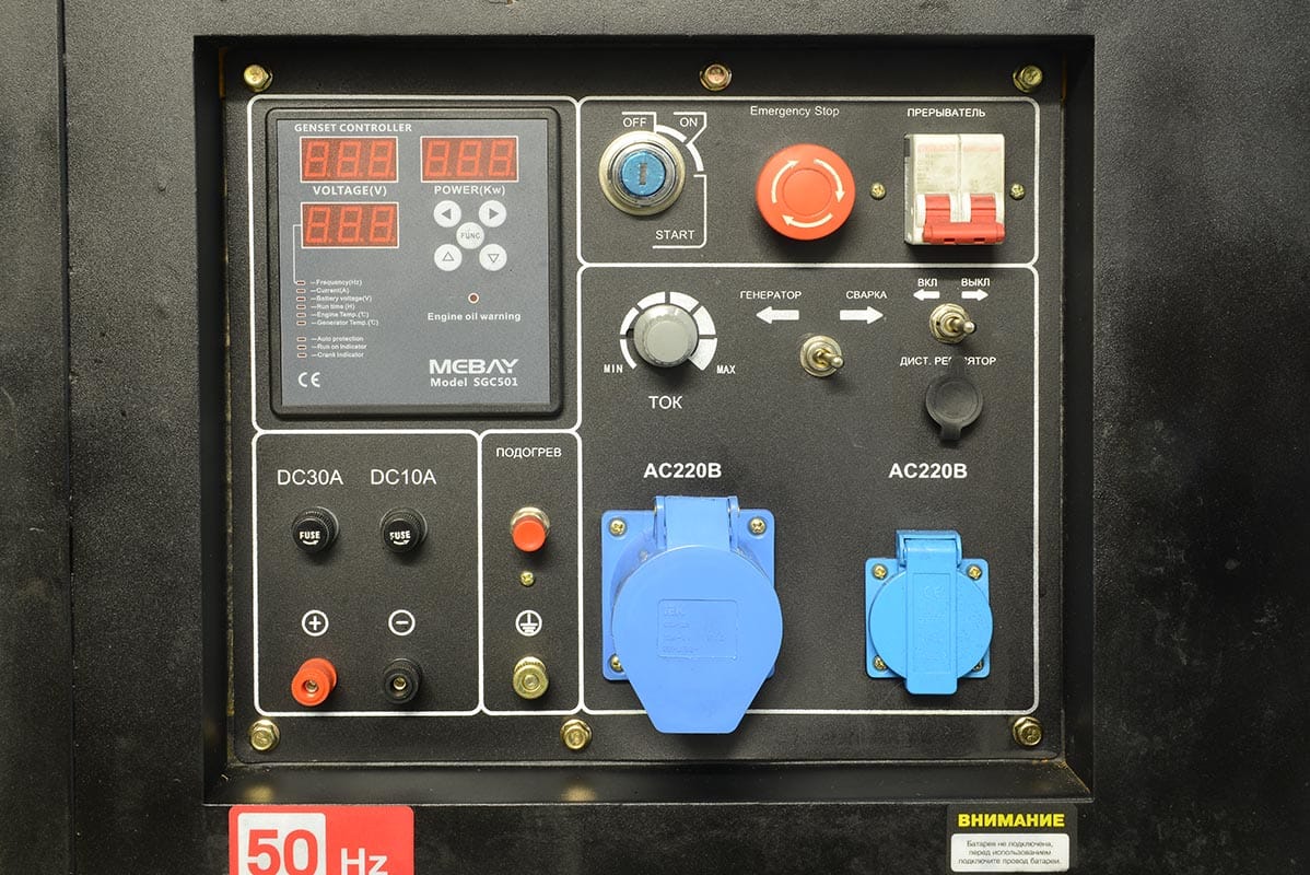 Вольтметр, амперметр, нагрузка, частота, моточасы, уровень топлива, датчик низкого давления масла |