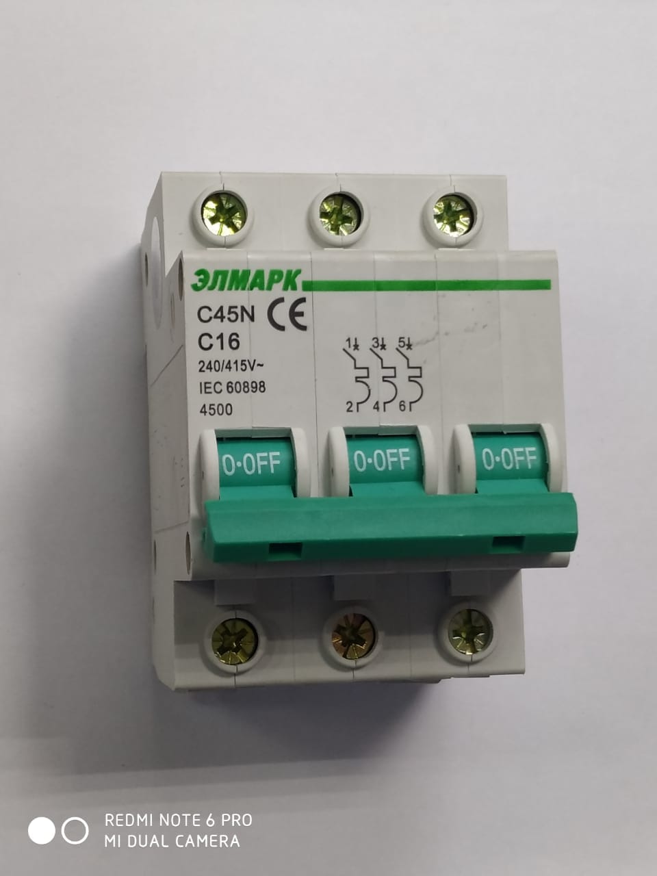 Выключатель автоматический реечный C45N 4.5KA 3Р – 16А (Элмарк)