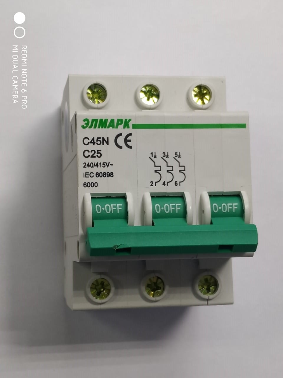 Выключатель автоматический реечный C45N 6.0KA 3Р – 25А (Элмарк)